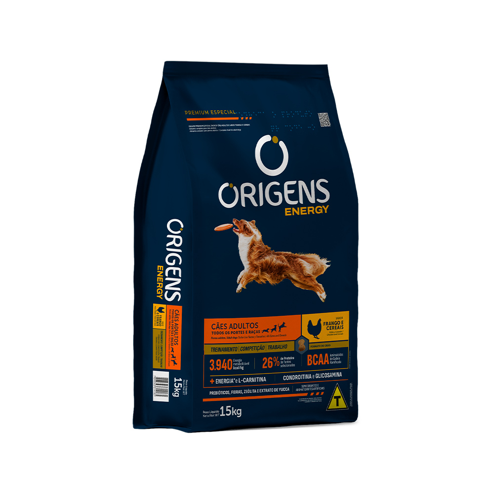 Ração Origens Energy Cães Adultos Frango E Cereais 15 Kg