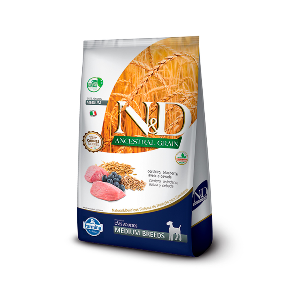 Ração N&d Ancestral Grain Cães Adultos Raças Médias Cordeiro E Blueberry 10kg