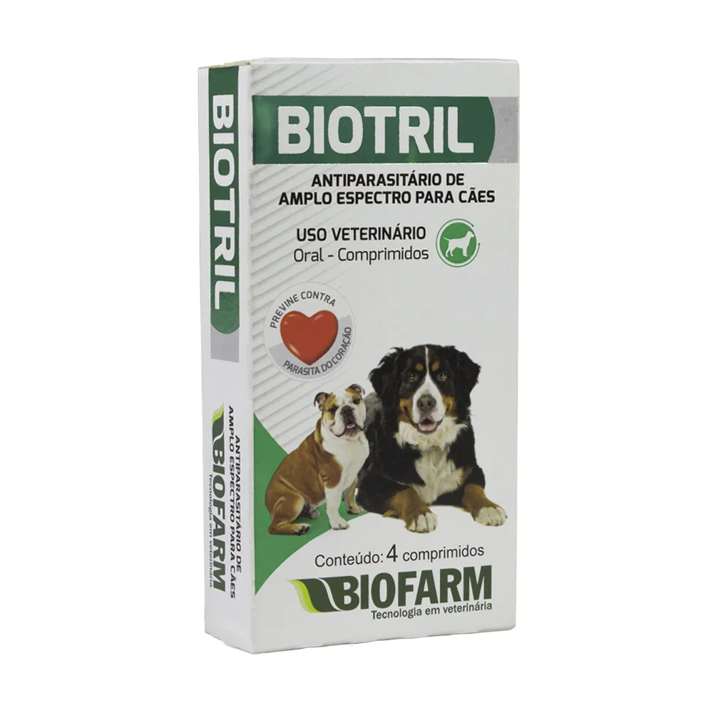 Vermifugo Antiparasitário Biotril Biofarm Cães Amplo Espectro 4 Comp